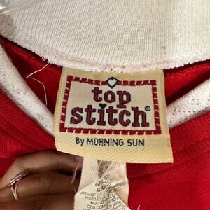 VTG Top Stitch Morning Sun Large Red Collared Sweater Holiday Christmas Penguin