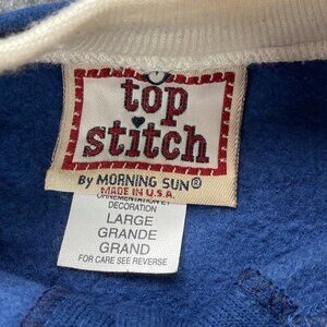 VTG Top Stitch Sweatshirt Womens L Blue Button Bird house Grandma Morning Sun