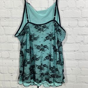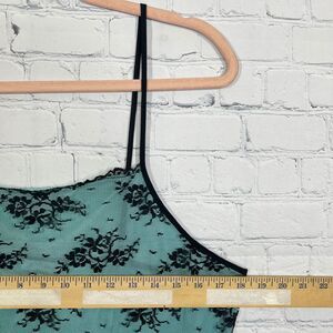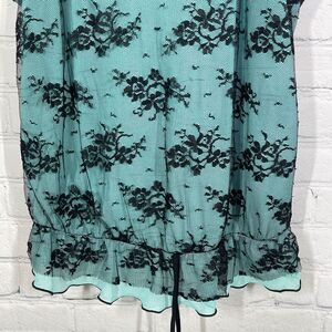 VTG Top Women XL Mesh Green Black Sheer w/ Skulks Whimsygoth Punk Vampire Goth