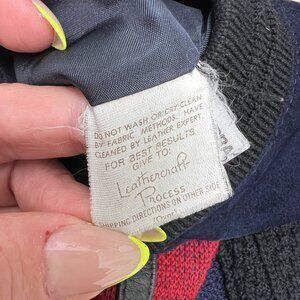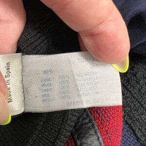 In great preowned condition! Contrasting knit wool and leather trim, patchwork leather down sleeves, thick chunky knit, buttery smooth leather, excellent quality, made in Spain. Length 27" Pit to pit 25", fits like a relaxed M. Smoke and pet free home.