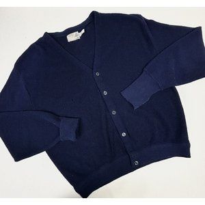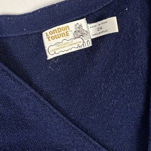 VTG Towne London Fog Knit Cardigan Sweater 2X Navy Grandpa USA Cobain Authentic