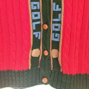 VTG Traditional Trading Co Women's Sz L Cotton Hand Knitted Golf Vest Red Green