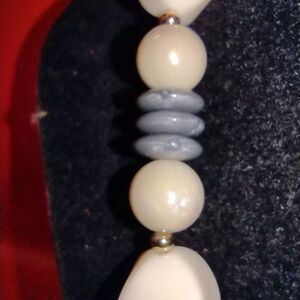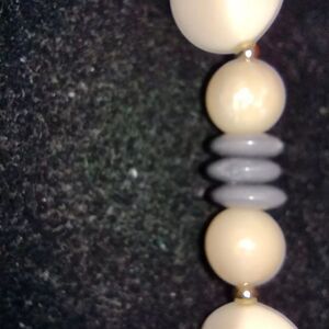 VTG Trifari Cream And Gray Acrylic bead 16" necklace With Gold Tone Spacers NWT