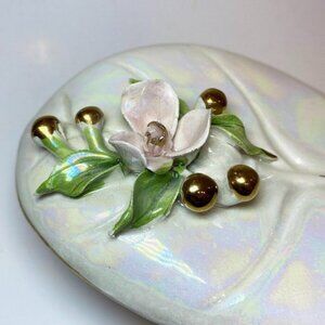 Trinket Treasure Jewelry Ceramic Box with Mother of Pearl Glaze and Delicate Ceramic Flowers.