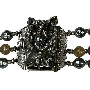 VTG Triple Strands Faux Pearl Labradorite Beaded Statement Necklace Rare Clasped