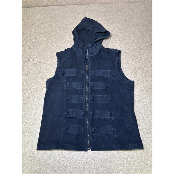 VTG Tripp NYC Vest Jacket Mens Large Black 100% Cotton Zipped Goth Emo M F3