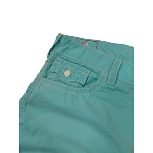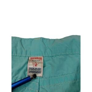 VTG True Religion Boardshort Men's 36 Blue Big T USA Cotton Nylon Swim Trunks