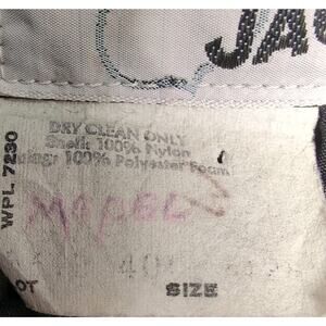 Good preowned vintage condition. Jacket is wrinkled from storage. The edge at the bottom snaps shows some wear. Name written on care tag. Please see photo. This is a short style, even though it is a 40L. Please use measurements to determine fit.