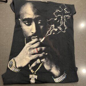 VTG Tupac Hip Hop Rap Studded Swarovski Blunt Chain T-Shirt