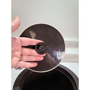 This vintage Tupperware ice bucket in mocha brown is a must-have for any home bar or entertaining space. The push button lid keeps ice cubes fresh and cool, while the airtight seal ensures no spills or leaks. Measuring 9" in height and 8" in width, this 2-piece set includes a lid and is made of durable, reusable plastic.