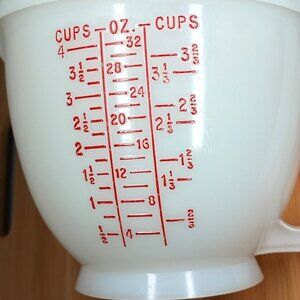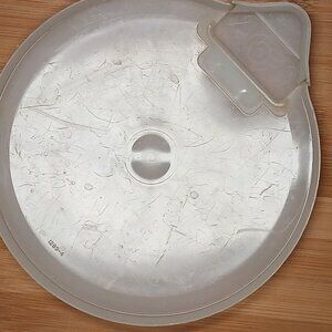 The lid is also in good shape. The pour spout snaps shut and still has a stiff hinge. Lays flat and not warped. A rare Tupperware measuring tool to find in this great condition.
