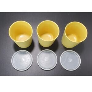 VTG Tupperware 6 oz. Kids' Juice Glasses Tumblers 1251 Set of 3 Harvest w/lids
