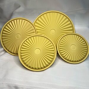 VTG Tupperware Canister Set Yellow Starburst Matching Servalier Lids 1970’s