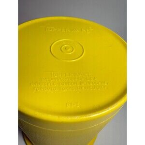 The VTG Tupperware Harvest Orange Yellow Servalier Canister 811 with Lid Seal is a vintage and retro kitchen storage item manufactured in the United States. This small canister features a snap-on lid and is made of plastic material in a vibrant yellow color. It is an original Tupperware product from the Food/Kitchen theme collection, perfect for adults looking to add a touch of nostalgia to their kitchen or collectibles collection. The canister includes one compartment and comes with a matching lid, offering a unique and functional addition to any kitchen storage and organization setup.