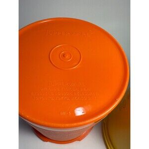 VTG Tupperware Orange Yellow Servalier Canister 811 With Lid Seal USA Set 2