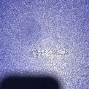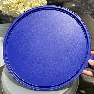 Store food securely with this Tupperware container. Features a royal blue lid and frosted base. Ideal for kitchen organization.
