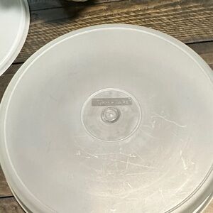 This is a vintage Tupperware pie or cupcake carrier in great condition. Stored in cabinet and no longer needed.
