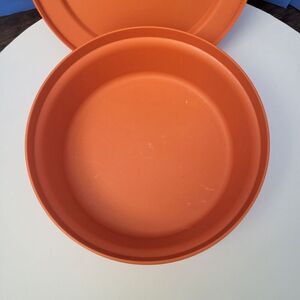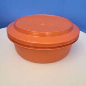 VTG Tupperware Seal N Serve 8" Harvest Orange Bowl and Lid (1346, 1337)