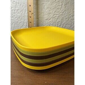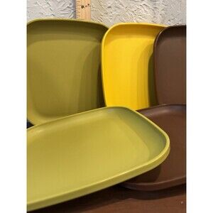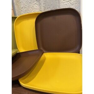 VTG Tupperware Square Plates (6) #1534 Lunch Picnic Camp Autumn Colors Avocado