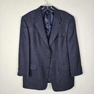 VTG Tweed Mens Sport Coat Jacket Navy Houndstooth Gun Check Blazer Wool USA 42S