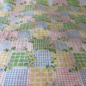Adorable vintage Cannon muslin pastel floral & check twin flat sheet. Mix it with other pink, blue, yellow or green sheets for a great retro look! Great vintage condition with one small slit in top hem, some fading but no spots or stains. Please see all photos.