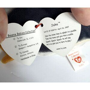 This vintage plush duck from the esteemed Ty Beanie Babies Collection adds a nostalgic charm to any collector's trove. Jake, with his delightful colors and endearing features, captures the playful spirit of the 90s. A timeless piece that evokes fond memories of simpler days, Jake is a plush companion that stands the test of time.