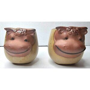 VTG UCTCI Japan Stoneware Pottery Mugs With 3D Cow Set Of 2 Anthropomorphic