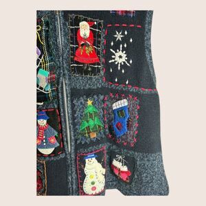 🎄 VTG UGLY CHRISTMAS SWEATER VEST ZIP UP STUDIO FA LA LA XL HEATHER BLUE PLAID