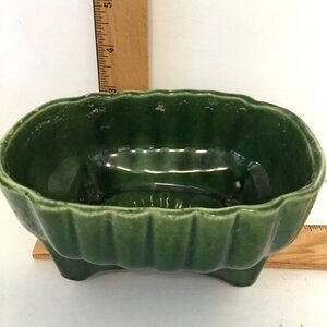 Vintage mid-century planter by UPCO (Ungemach Pottery Co.), marked 370 USA on the base. Finished in a rich green glaze with scalloped rectangular form.