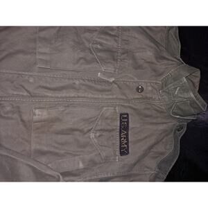 The VTG US Army Olive Green M-1951 107 Shell Heavy Field Coat Jacket in size Regular Small is a classic military-style jacket made of cotton. This green jacket features a shell design and is perfect for men who appreciate a vintage look. The coat's durable construction and authentic military theme make it a standout piece in any wardrobe, adding a touch of history and ruggedness to any outfit.