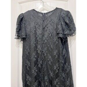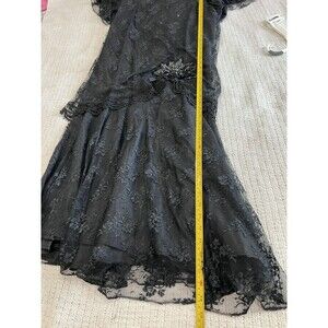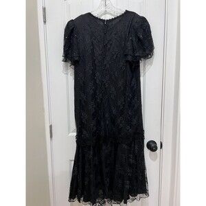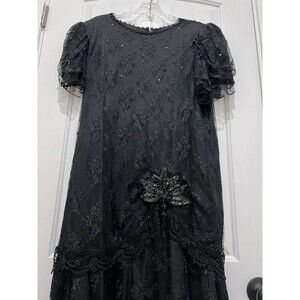 VTG USA 80's Maya Jornot for Michael Marcella Black Lace Pearl Sequin Dress 16