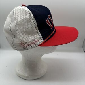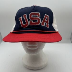 Show off your patriotism with this vintage USA Logo Script Trucker Hat. The red, white, and blue colors are perfect for any occasion, whether it's for travel, casual wear, or work. The adjustable size and breathable mesh back make it comfortable to wear all day long.
