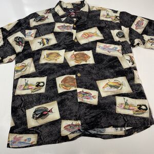 VTG USA Quiksilver QS Shirt Men's Medium Hawaiian Fish Print Shirt Rayon RARE