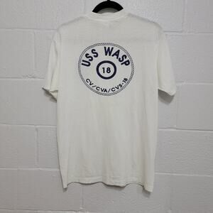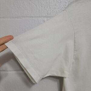 Preowned tee in good condition, no tears or major stains but some overall discoloration and thinning of fabric.