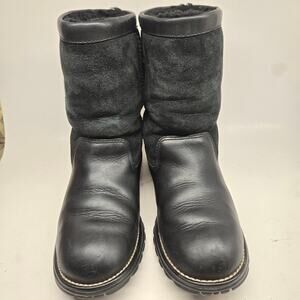 VTG Ugg Australia 5381 Men's Black Leather and Sheepskin Winter Mid Boot, Sz 7