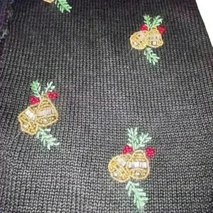 VTG Ugly Cute Christmas Sweater Vest Beaded silver gold bells V neck button PM