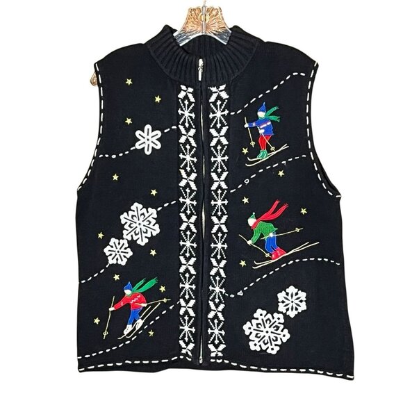 VTG Ugly Sweater Studio Joy Vest Embroidered XL Womens Christmas Skiers Winter