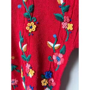 VTG Unique Marissa Christina Cottagecore Red Floral Embroidered Knit Sweater- M