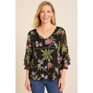 Beautiful vintage chiffon blouse with a tiered flutter sleeve. Lightweight. Perfect for spring, summer, and casual days.