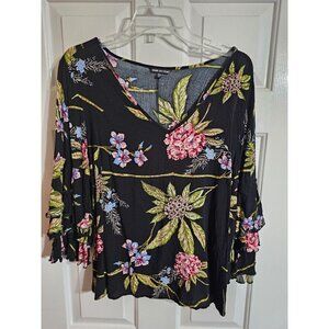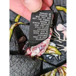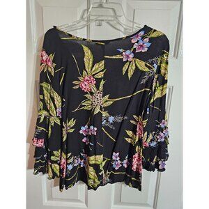 VTG Unique Spectrum Floral Chiffon Blouse X-Large Black Green Dark Cottagecore
