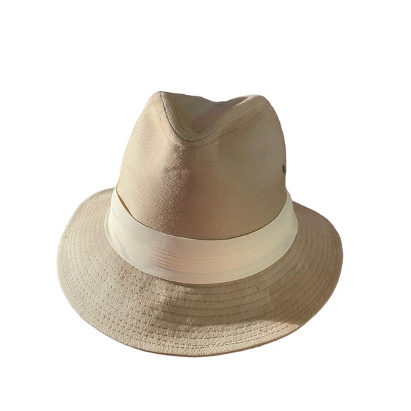 VTG United Hatters Cap and Millinery Tan Fedora hat size M. This vintage hat was made in the late 1970s and shows little to no wear. Union made in the USA it features a canvas body in khaki color with a cream hat band. Classic styling.