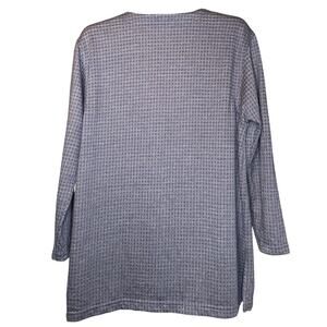 Throwback to the early 1990s with this iconic piece from Units® by Petite Sophisticate, a pioneering modular clothing brand known for versatile basics. This rare Made-in-USA cardigan features a soft sweatshirt-weight knit in a 50% cotton, 50% polyester blend, rendered in a navy blue and gray allover geometric dot print. Deep V-neck, five-button front, and 3/4 sleeves. Looks great styled open or layered over a crisp blouse or turtleneck.