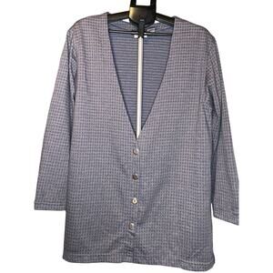 VTG Units Sz M Button-Up Cardigan Sweater USA Made Navy & Gray Geometric Print