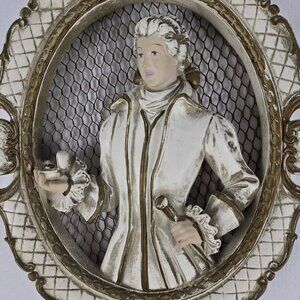 VTG Universal Statuary Co 1958 Chalkware Victorian Man Proposing Wall Hanging