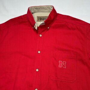 VTG University of Nebraska Huskers Red Twill Long Sleeve Button Shirt Mens Med