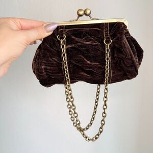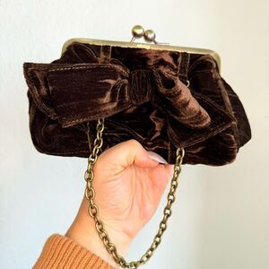VTG Unlisted Kenneth Cole Kisslock Bow Purse in Brown Ruched Velvet & Brass