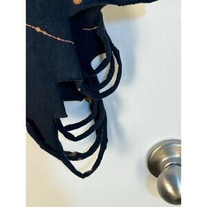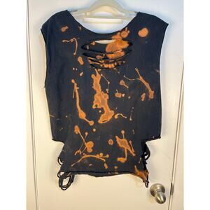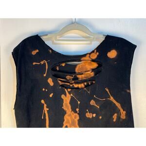 VTG Upcycled Thrasher Band T-Shirt Medium Black Bleach Splatter Distressed Grunge Festival. Cuts to both hips, back and shoulders. Size and material tags were removed. The tag said medium.