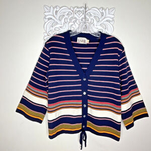 VTG VAMP by Koret Women's Medium Knit SWEATER V-Neck Button up 3/4 Sleeves Striped