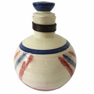 VTG VERNONWARE Ceramic Carafe Patriotic Red Blue Stripes Jug Pitcher USA MCM