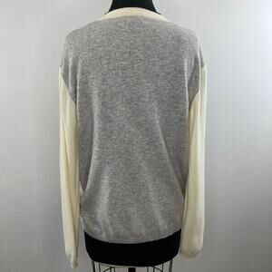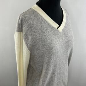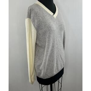 VTG VERSACE CLASSIC Stretch Wool Gray & Cream Colorblock VNeck Light Sweater M L